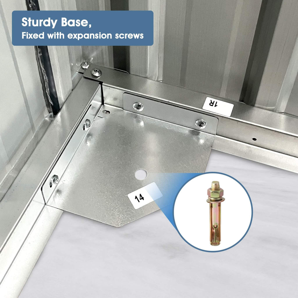 - Anti-UV galvanized steel coating protects against harsh elements, while the specially designed sloping roof prevents water accumulation and rust.