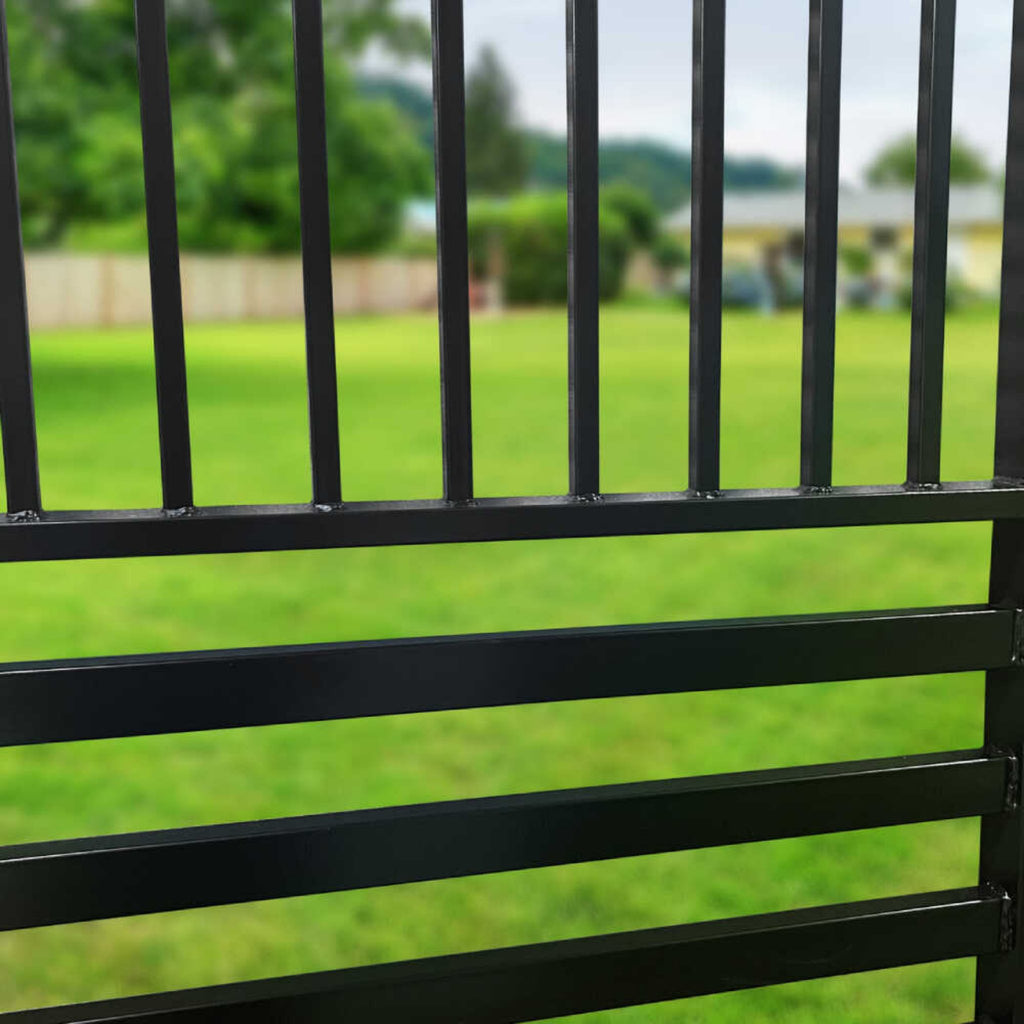 Experience the peace of mind that comes with superior protection. Unlike lightweight aluminum options that can bend under pressure, this gate is constructed from fully welded, heavy-gauge steel that stands strong against impact. It offers robust security for your property without compromising on style, giving you a functional barrier that is as sturdy as it is sophisticated.