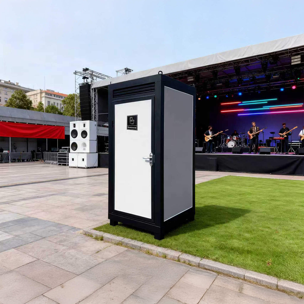 - The portable unit features a spacious single-stall design, with an interior layout optimized for comfort by offering adequate height and width to enhance the user experience.