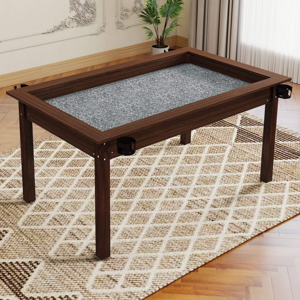 Lift the removable dining toppers to uncover a professionally recessed playing vault, engineered to keep your dice, cards, and miniatures contained and secure. This lowered surface offers an ergonomic view of the board, reducing back strain during marathon strategy sessions. With a premium, velveteen-lined play area that ensures cards slide smoothly and components stay in place, you can pause your campaign, cover it up for dinner, and pick up exactly where you left off later without disturbing the board state.