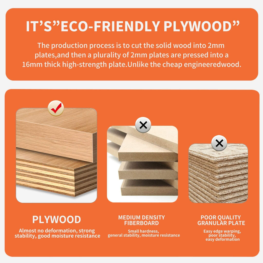 - Crafted from high-quality plywood and finished with a scratch and water-resistant melamine coating, the material is both eco-friendly and built to withstand the demands of daily use.