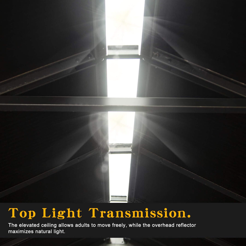 - The thoughtful design includes integrated skylights that allow natural light to illuminate the interior and built-in vents to ensure continuous airflow, keeping your belongings dry and preventing the buildup of moisture and mildew.