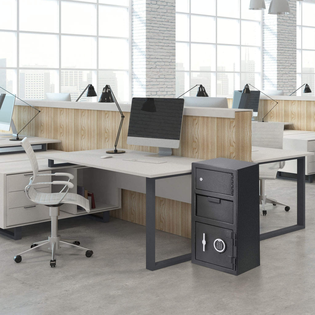 - Built with a solid steel body, this safe is equipped with three thick, pry-resistant steel deadbolts and a recessed door to prevent tampering. Its innovative anti-fishing design stops deposited items from being stolen through the drop slot.