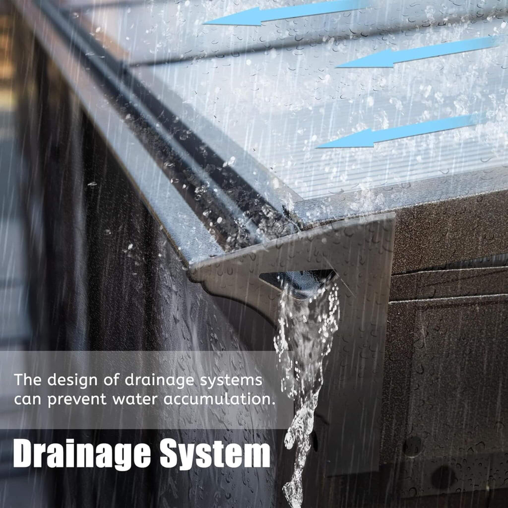 - Its innovative sloped drainage system efficiently channels rain and snow away, ensuring proper drainage and preventing water buildup for a cleaner and safer environment.