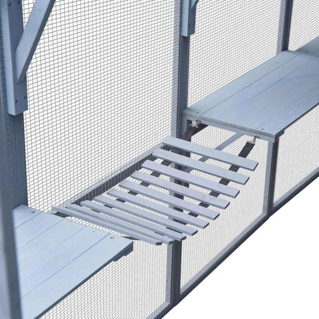 - Featuring a spacious interior with 2 bridges, 2 sleeping houses, and 7 cat walks, this cat house is designed to offer your furry friends a comfortable and fun space.