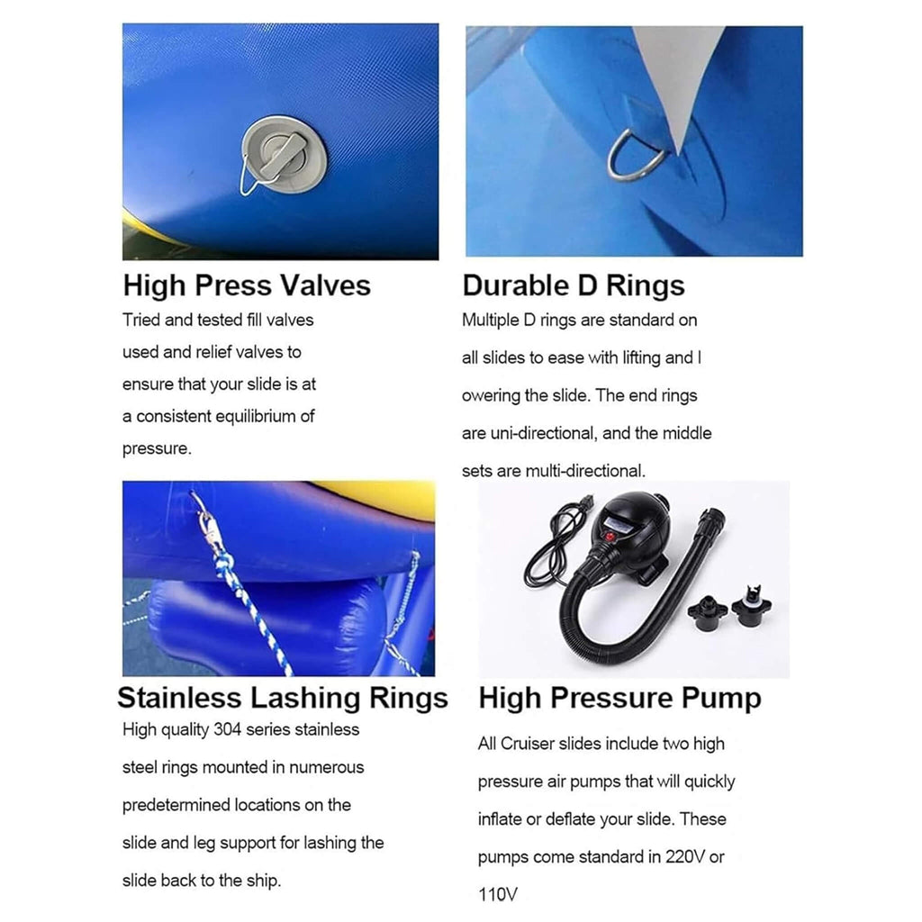Made from premium marine-grade materials, this inflatable slide boasts exceptional durability and stability, standing up to salty ocean sprays and bright sun. The slide’s smooth surface ensures a fun, safe, and fast glide straight into the water, creating unforgettable moments with every splash. Installation is quick and hassle-free, so you can focus on enjoying your time on the water.