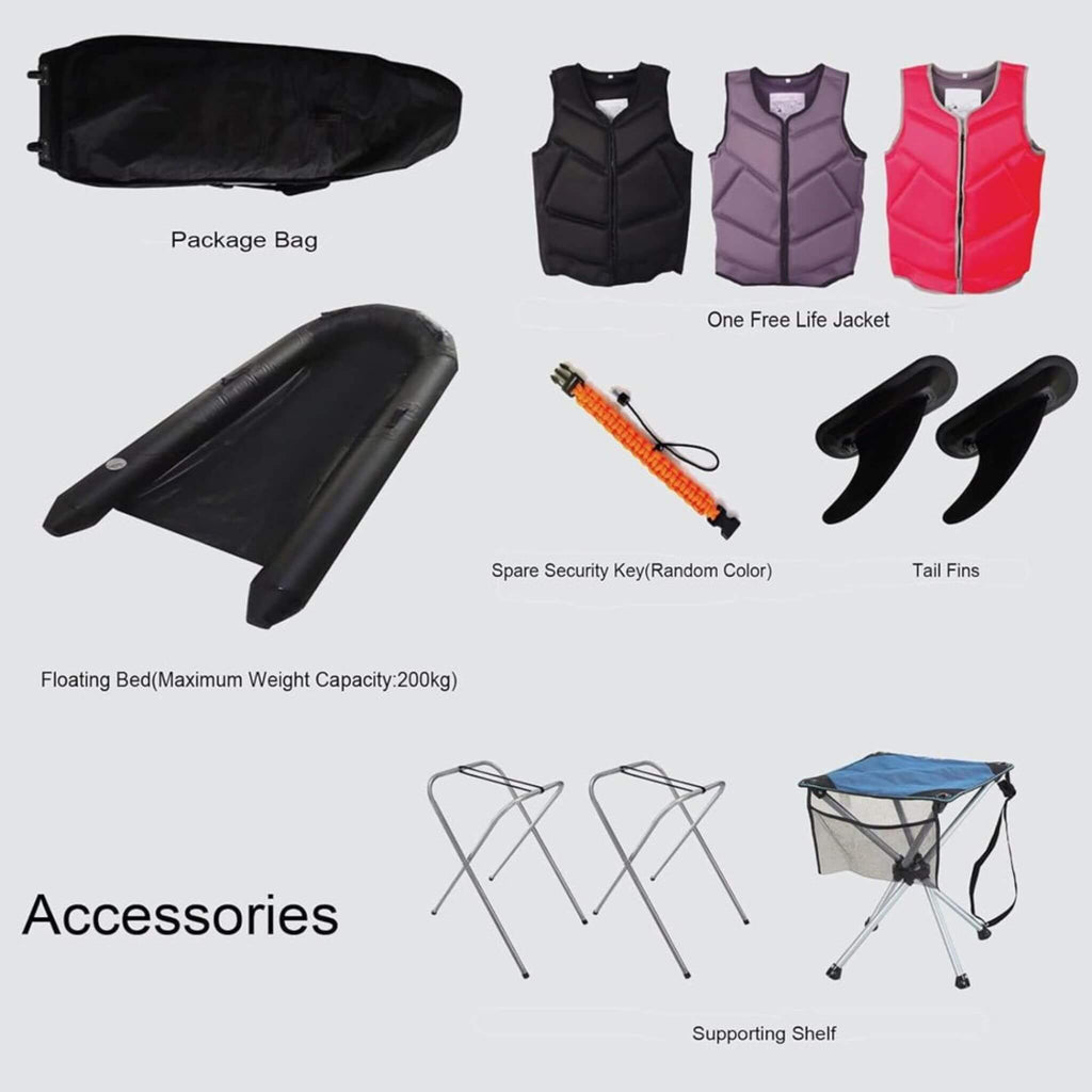 Crafted from high-quality ABS material, this board strikes the perfect balance between lightweight agility and rugged durability, weighing in at just 26kg for effortless transport. We've engineered every detail for your safety and comfort, from the ergonomic foot straps and traction pad that keep you stable, to the reliable water cooling system that ensures peak performance. The silent motor lets you immerse yourself in the sound of the waves, while the emergency paddle provides peace of mind on every journey.