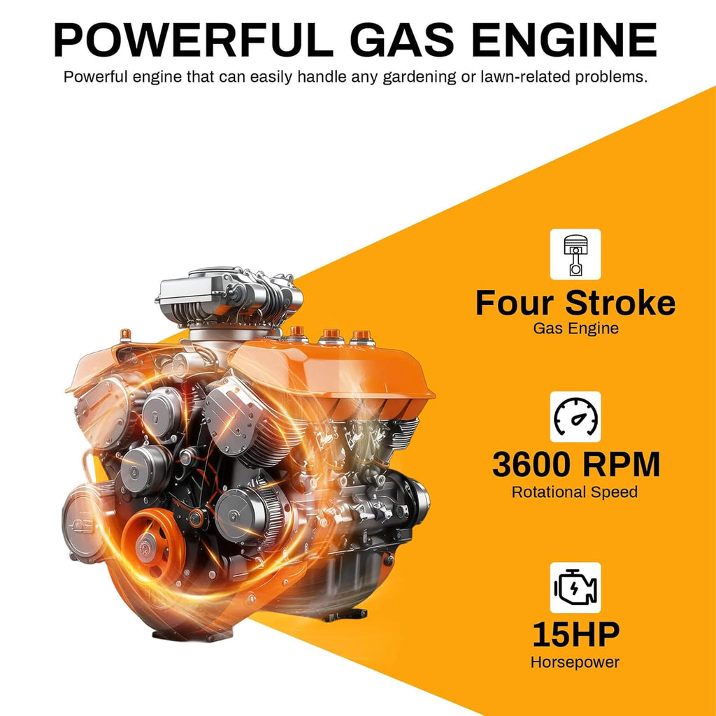 | Engine: | 420CC 15HP 4-Stroke, 3600 RPM |