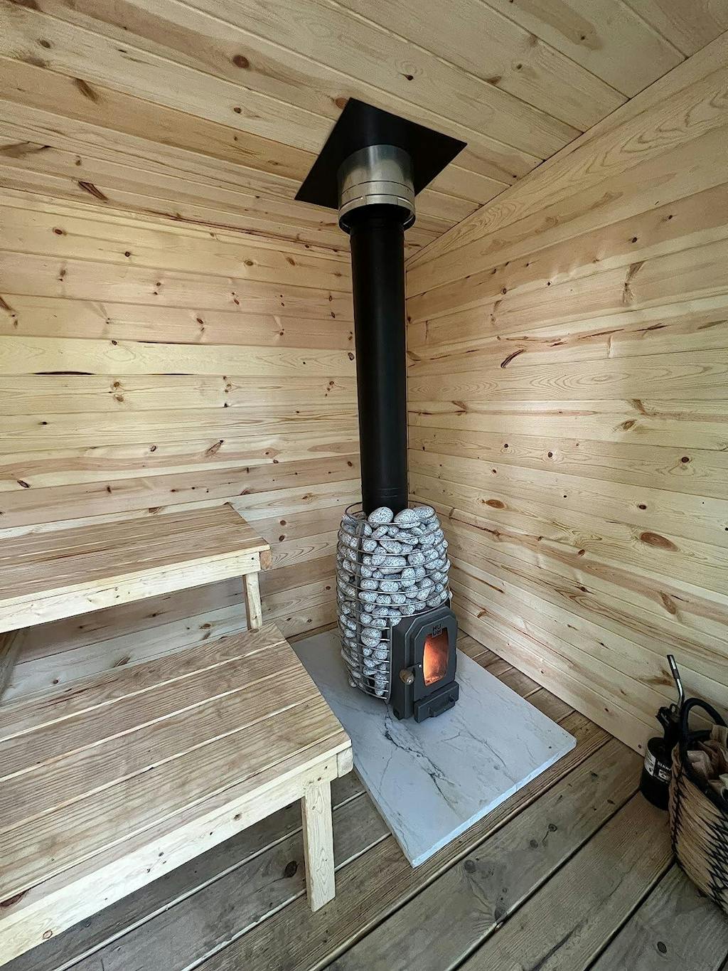Feel the gentle embrace of heat as the large stone capacity radiates warmth evenly, creating a serene atmosphere that melts away tension and rejuvenates your senses. Indulge in the luxury of a long-lasting sauna session fueled by the crackling fire.