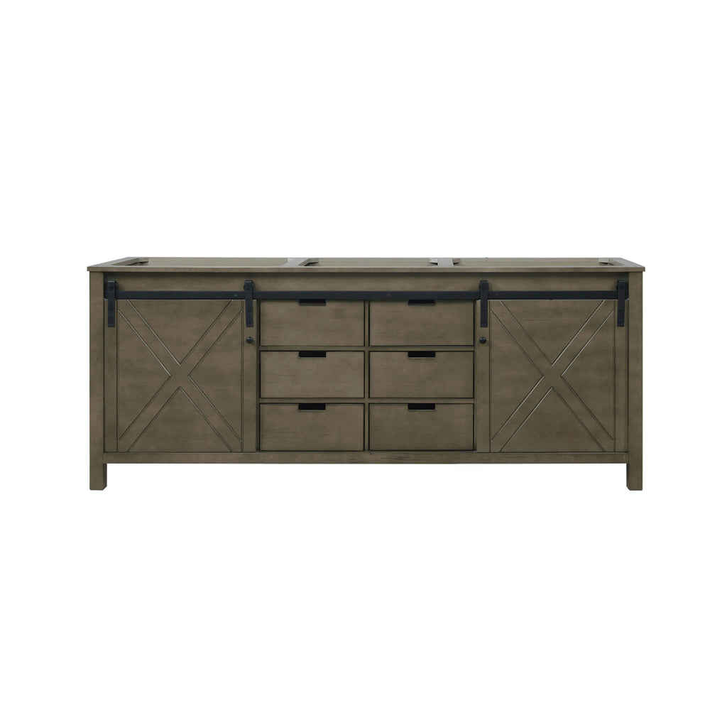 Elevate your bathroom's aesthetic with the stunning Nuvia 80-Inch Double Bath Vanity. The rich Rustic Brown finish brings a warm, inviting atmosphere to your space, perfectly complementing the sturdy solid wood frame. Designed to be the centerpiece of your master bath, this substantial piece offers a sophisticated and robust foundation for your morning routine that balances modern design with natural textures.