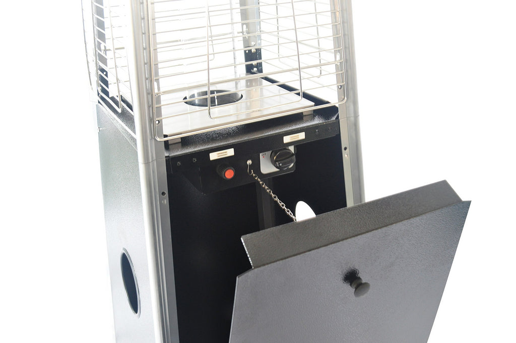 Enjoy powerful, adjustable warmth with an easy-to-use variable control knob, allowing you to set the perfect temperature for any evening. When the party's over or you need to reposition it, the included wheels make moving the heater a breeze. Designed for convenience, the access door makes swapping out the standard 20lb propane tank (sold separately) quick and simple.