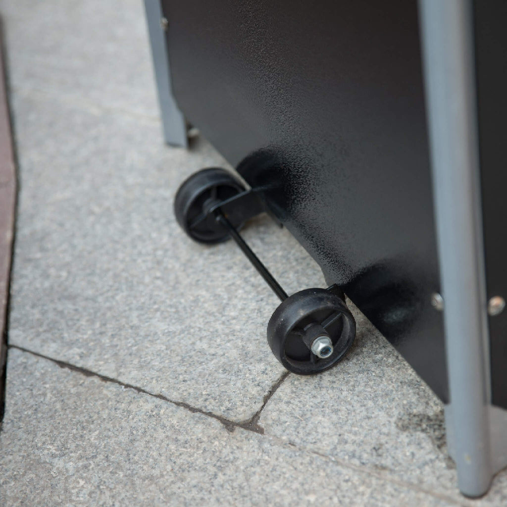 - Features an easy-access door for simple propane tank changes and comes equipped with wheels for effortless mobility around your patio or deck.