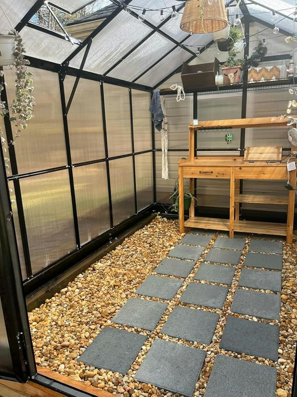 - Equipped with high-end polycarbonate panels offering 99.99% UV protection and a drainage system for optimal plant growth and moisture balance.