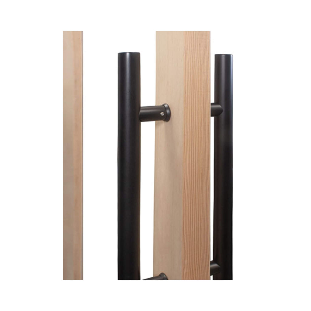 - Designed for easy accessibility and installation, the door comes pre-hung on a pre-assembled frame with elegant vertical handles and robust, black-finished stainless steel hinges that automatically self-close to maintain the perfect sauna environment.
