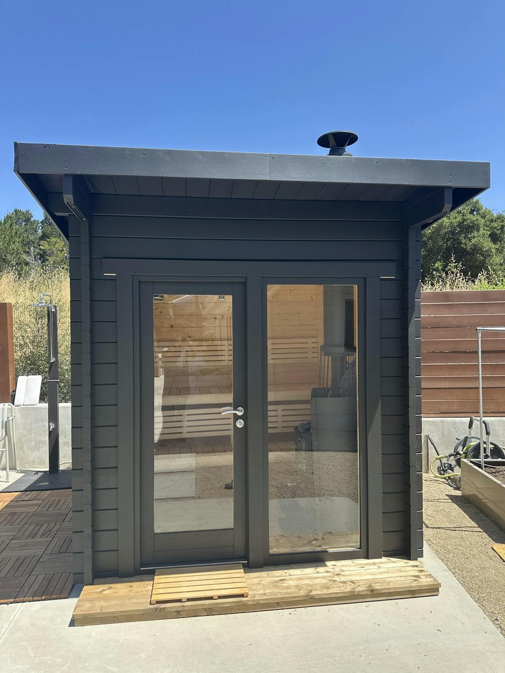 - Built with the finest materials, including premium-quality spruce and weatherproof components, this sauna is engineered to last a lifetime. The sloped roof efficiently manages rainwater, ensuring a dry and warm interior. The robust, lockable tempered glass door exudes an air of sophistication while providing security and ease of use.