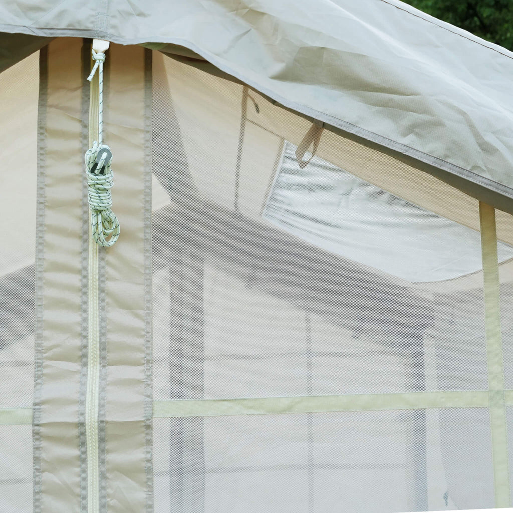 - A dual-door design offers convenient entry and exit, while large mesh windows and doors deliver fantastic airflow and create a bug-free environment for you to relax in.