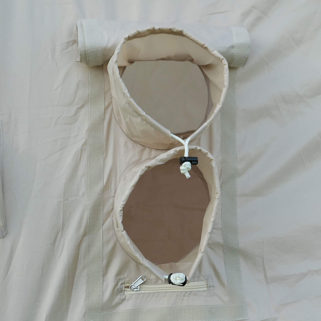 - This 4-season hot tent is equipped with a specially designed stove jack for a wood stove and a port for a wood stove or portable AC, ensuring you stay comfortable whether it's cold or hot outside.